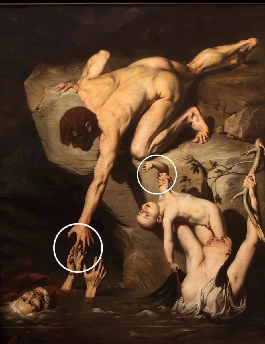 В библейском повествовании о Великом потопе всё ясно и недвусмысленно: Бог избирает Ноя как праведника, которому суждено спасти род человеческий. Ковчег, долгие дни наводнения, радуга как знак завета — эта история отточена веками толкования и прочно вошла в культурный код. Но вот перед нами картина французского художника Жозева‑Дезире Куртуа «Сцена великого потопа». И здесь всё переворачивается с ног на голову. На полотне — миг отчаянного выбора. Вода уже захлёстывает берега, время истекает. В центре — мужчина, в последнем усилии вытягивающий из воды старого отца. А рядом, буквально на расстоянии вытянутой руки, остаются жена и сын. Они ближе, они явственнее нуждаются в помощи — но взгляд героя устремлён лишь к старику. В этой композиции — целая философия, зашифрованная в образах: * Жена — сама жизнь, её тепло, её непрерывное течение. Она протягивает к мужу ребёнка, словно передавая эстафету бытия. * Сын — будущее, нераскрытый потенциал, надежда, которая ещё только прорастёт. *
