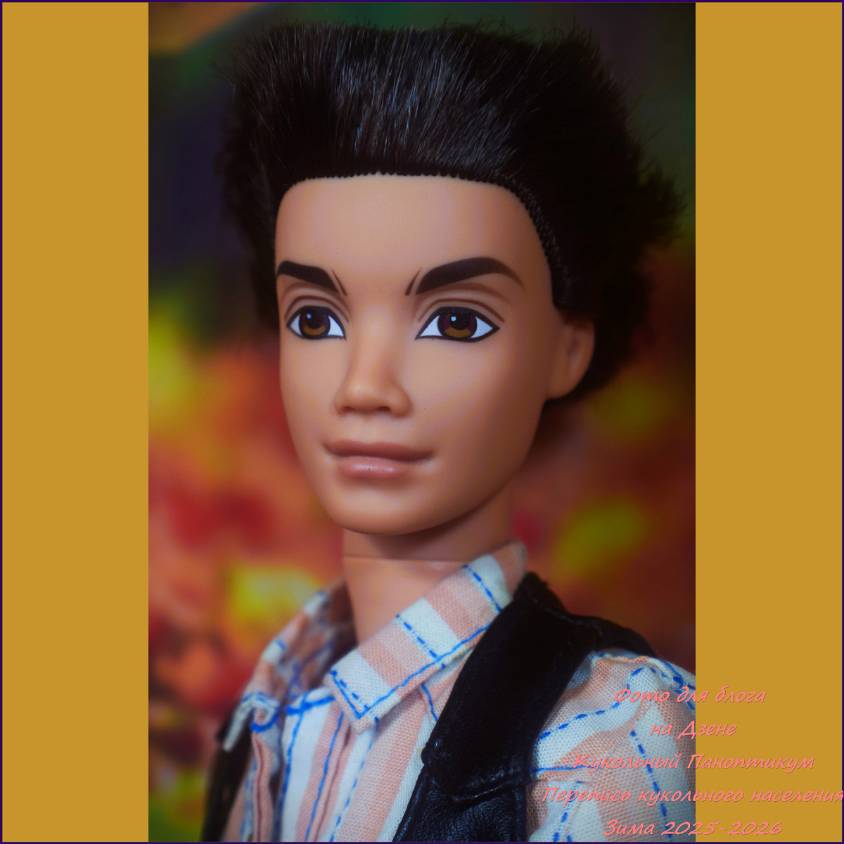 1) Ривер (River) — это высокий, стильный загорелый парень с густыми темными, почти черными волосами, уложенными в короткую, объемную прическу, напоминающую стрижку «площадку». Его лицо имеет четкие, скульптурные черты: широкие брови, большие карие глаза и аккуратно очерченные губы. Он обладает типичным для кукол My Scene выражением лица — спокойным, немного задумчивым, что придает ему загадочности. Тело куклы выполнено в масштабе 1/6. Обычный Ривера — это смесь повседневного стиля и вечернего шика, что отражает его роль в серии как друга и партнера по вечеринкам.