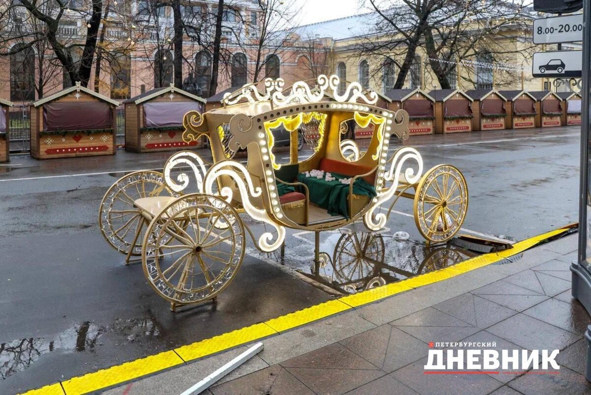 Корреспондент «Петербургского дневника» запечатлел, как на Манежной площади проходит монтаж Рождественской ярмарки.