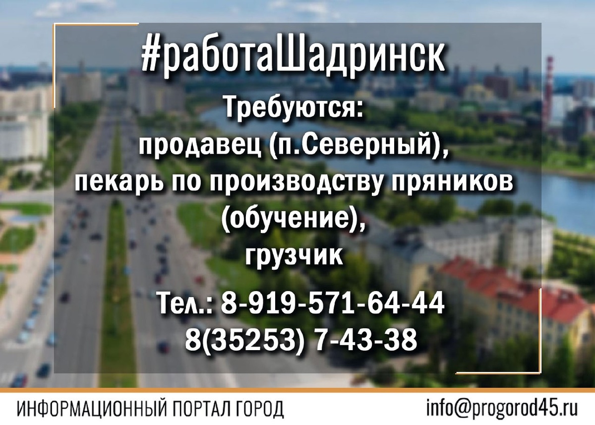 Требуются: продавец (п.Северный), пекарь по производству пряников (обучение), грузчик. Тел.8-919-571-64-44, 8(35253)7-43-38 #Шадринск #работа #вакансия #требуется