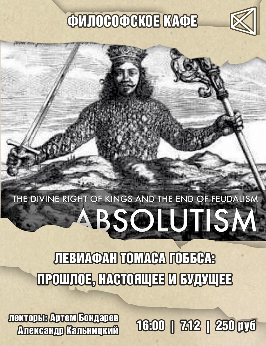 Справочники называют Гоббса «механистическим материалистом», если сказать просто, это был учитель математики, геометрии, увлёкшийся античными мыслителями, и написавший, в общем, один свой «философский труд» - «Левиафан», остальные незначительны. Под философское кофе в Мануфактуре зашёл разговор о Гоббсе с Артёмом Бондаревым и Александром Кальницким, молодыми философами БелГУ.