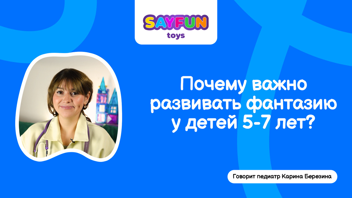 💫Здравствуйте, дорогие родители! Я Карина Березина, врач-педиатр и мама в декрете. Мы на канале SAYFUN Toys. Часто кажется, что фантазия — это про смешные рисунки на обоях и выдуманных друзей. Что-то несерьёзное, что пройдёт с возрастом. Но это не так. Творческое мышление — это ключевой навык для успеха в любой сфере будущего. А возраст 5–7 лет — золотое время, чтобы его взрастить. Почему это так важно? Давайте разберём по пунктам. 1. Это «тренажёр» для решения проблем Представьте: ребёнок строит мост из конструктора, чтобы спасти игрушку, или придумывает, как оживить завядший цветок в игре. Его мозг в этот момент не просто играет - он учится гибкости. Ищет нестандартные ходы, пробует и ошибается, ищет новые пути. Этот навык - основа для математики, переговоров и преодоления любых жизненных трудностей. Проще говоря: будущий инженер или учёный рождается не на уроке, а в песочнице. 2. Это фундамент для эмоционального интеллекта Когда ваш сын лечит мишку, а дочь утешает плачущую куклу