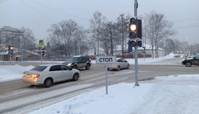 Светофор заработал, но тут же мигнул: кто теперь главный на перекрёстке улиц Комсомольская и Хабаровская в Южно-Сахалинске?