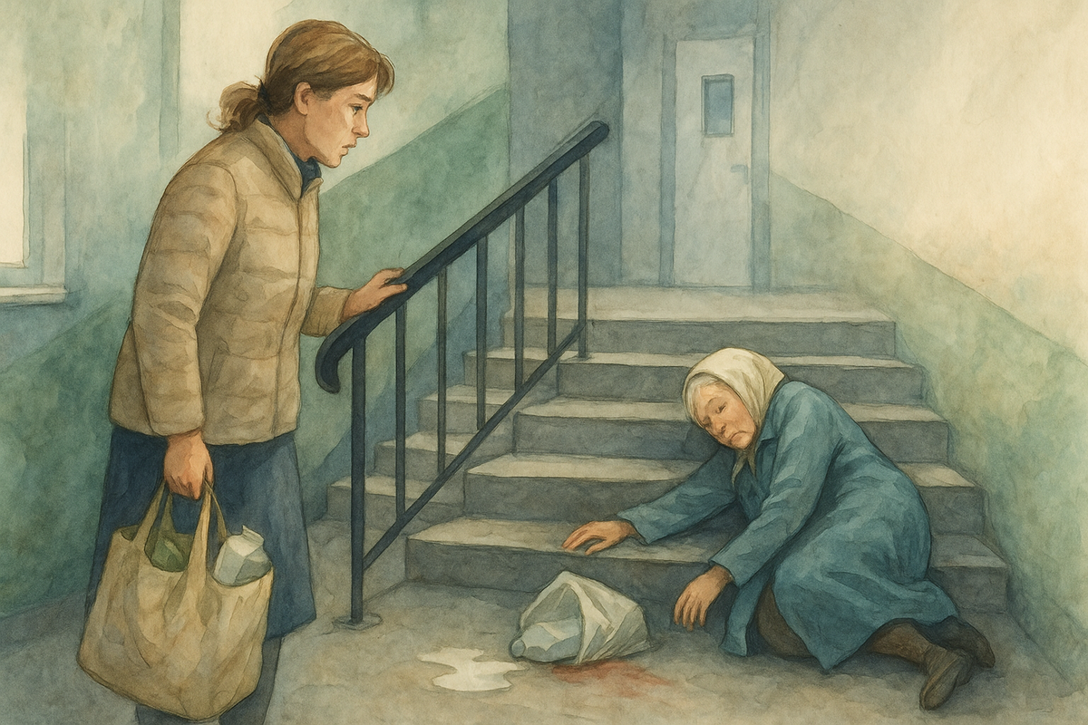 Я поднималась медленно: второй, третий… Между третьим и четвёртым у нас недавно поставили новую лампочку. Целый дом неделю обсуждал: «Наконец-то!», «Надо было LED брать», «Опять за наши деньги». И вот под этим честным, ярким светом она и лежала — Зинаида Петровна.