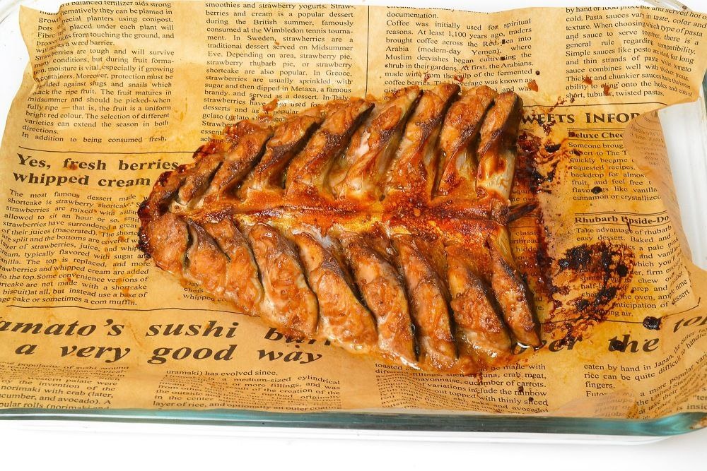 🐟 Скумбрия, запеченная «ёлочкой» в духовке Потрясающе красивое и ароматное новогоднее блюдо! Сочная рыба в пряной лимонно-травяной шубке станет звездой праздничного стола. ИНГРЕДИЕНТЫ: ▪️ 2 крупные скумбрии (около 600 г каждая) ▪️2 лимона ▪️4-5 веточек розмарина ▪️4-5 веточек тимьяна ▪️3 ст. л. оливкового масла ▪️4 зубчика чеснока ▪️Соль, черный перец — по вкусу ▪️Свежая зелень (петрушка, укроп) для подачи ПРИГОТОВЛЕНИЕ: 1. Подготовка. Рыбу очистите, удалите головы и внутренности. Промойте и обсушите. Сделайте на каждой тушке глубокие диагональные надрезы с одной стороны, чтобы получился рисунок «ёлочки». 2. Маринад. Смешайте оливковое масло, сок половины лимона, пропущенный через пресс чеснок, соль и перец. Половиной маринада обильно натрите рыбу снаружи и внутри. 3. Начинка. В брюшки каждой скумбрии положите по паре веточек розмарина и тимьяна, а также по несколько тонких ломтиков лимона. 4. Укладка. На противень, застеленный пергаментом, выложите рыбу «ёлочками» вверх. В надре