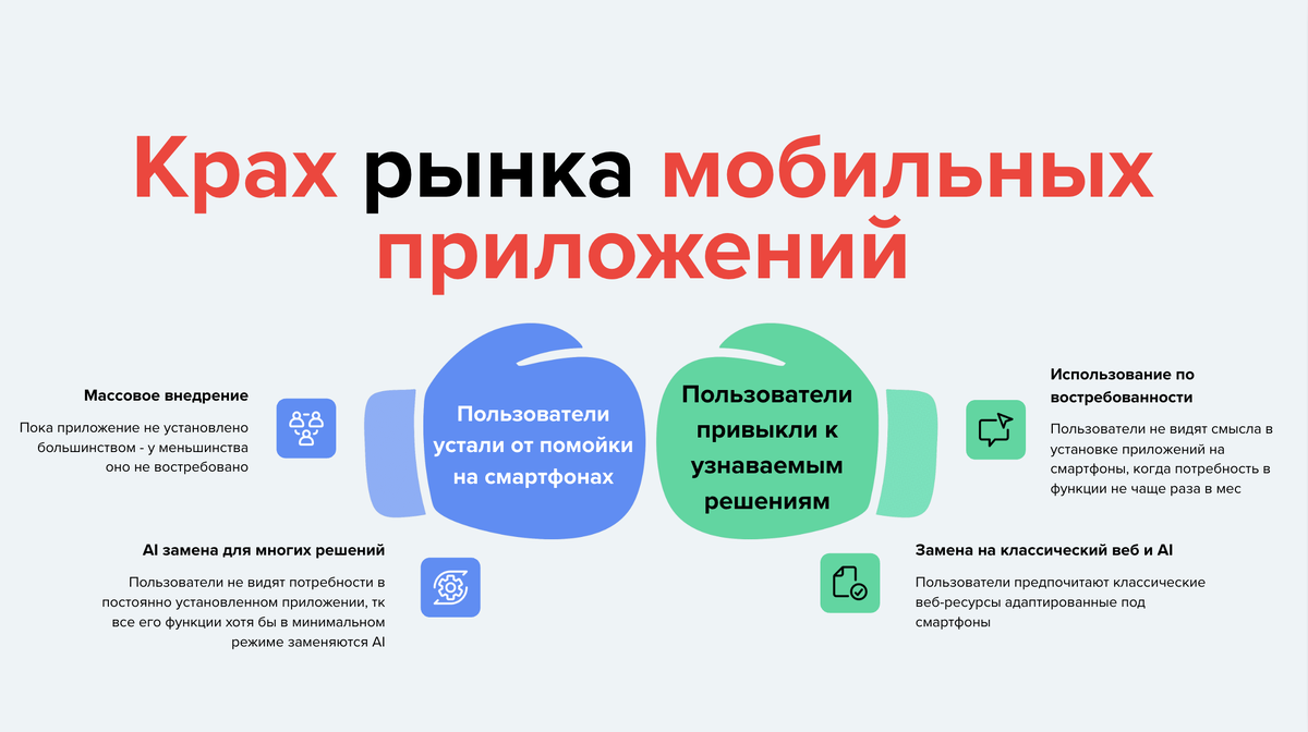 Это не просто экономия ресурсов. Это понимание, что пользователю нужно не приложение, а функциональность — в максимально лёгкой, фрикционной форме. Побеждает тот, кто убирает барьеры.Тогда что дальше?