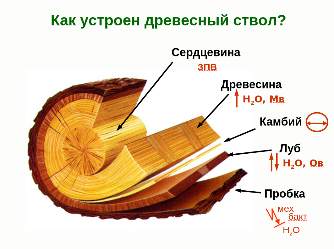 Урок ботаники. Строение древесного стебля (лабораторная работа и опорный конспект)