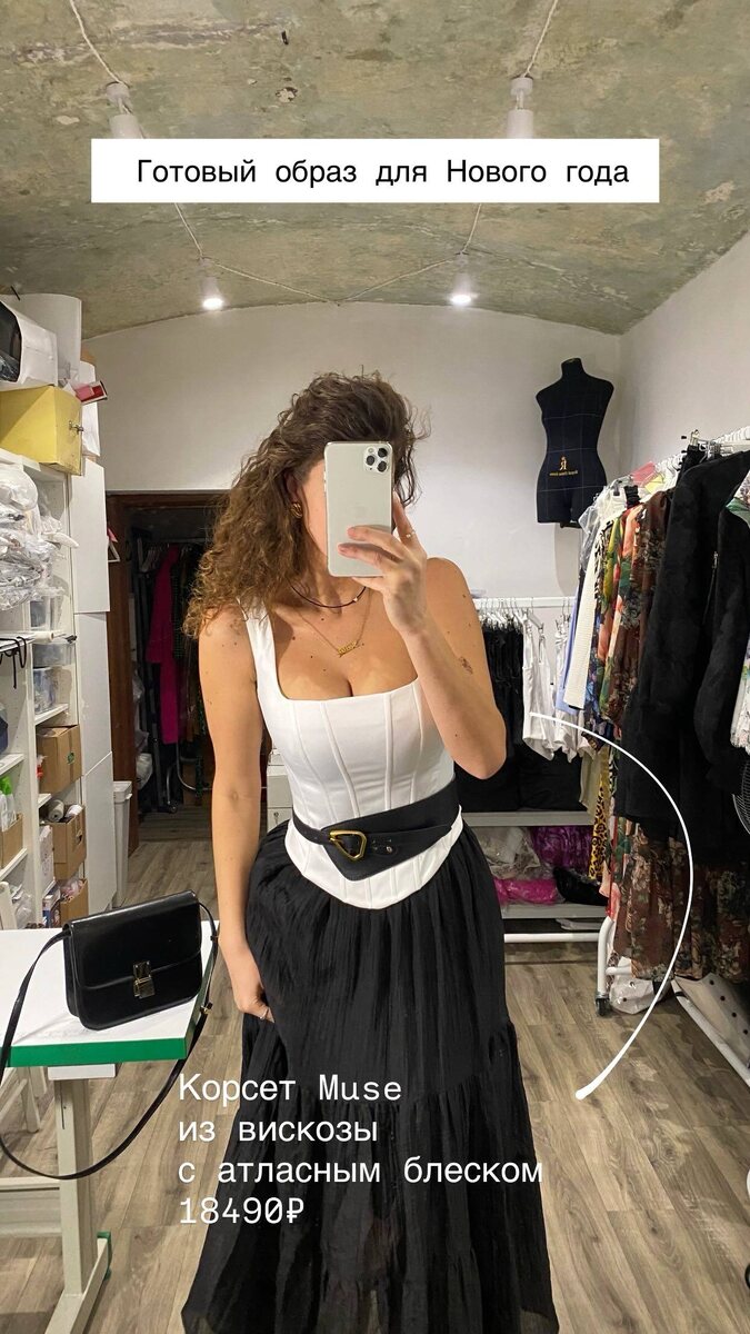 Игра контрастов ♟️ Этот образ мне нравится лаконичностью и игрой фактур: • строгий, очерчивающий силуэт, корсет ➕ воздушная юбка • деликатный блеск атласной ткани ➕ матовая, слегка жатая фактура тенселя Здесь атласный корсет, смотрится по-вечернему эффектно, оттенок — холодный белый, и он сейчас по специальной цене, 12990₽ Атласный чёрный корсет сюда тоже будет супер 🐈⬛ их осталось меньше P.S. Образ дополнили аксессуаром — ассиметричным ремнем из экокожи, ремень в продаже!