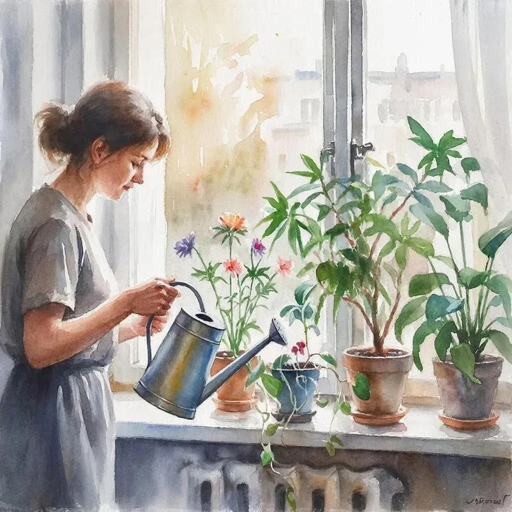 Привет-привет! 😊 Решила поделиться своей маленькой флористической тайной — секретами правильного полива цветов. Потому что даже самый красивый цветок превратится в грустный пучок травы, если неправильно подойти к делу 🌸💧 Как я поливаю цветы? 1️⃣ Проверяю состояние земли. Прежде всего смотрю, насколько сухая почва. Обычно делаю это палочкой — достаточно погрузить его примерно на сантиметр. Если земля влажная, значит, растению пока хватает влаги. 2️⃣ Отстаиваю воду. Никогда не лью свежую водичку из-под крана. Всегда оставляю её отстаиваться хотя бы сутки, чтобы исчезли всякие примеси и хлорка испарились. 3️⃣ Подбираю температуру воды. Цветочкам не нравятся холодные души, поэтому поливаю только тёплой водичкой, примерно +20...+25 градусов. 4️⃣ Аккуратно увлажняю корни. Стараюсь не попадать водой на листики и цветки, потому что это чревато гнилями и пятнами. Удобнее всего пользоваться лейкой с тонким носиком или бутылочкой с распылителем. 5️⃣ Делаю дренаж. Это важно особенно для