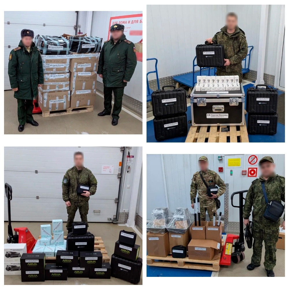 БФ Сергея Михеева передал военнослужащим для СВО: 19 квадрокоптеров, 18 аккумуляторов для квадрокоптеров, 3 комплекса перехвата видеоизображения БПЛА, 3 нелинейных локатора, 1 усилитель сигнала, 14 подавителей БПЛА, 5 детекторов дронов, 13 приборов ночного видения и тепловизоров с кронштейнами, 1 дизельный генератор, 2 системы связи, 12 радиостанций, 83 комплекта навесной защиты СВМП: защита плеч, защита шеи, напашник, пятиточечник, 78 катушек оптоволокна(15 км и 30 км), 3 приемные станции оптоволокна, 1 видеорегистратор, 32 камеры видеонаблюдения с треногой, и другое.