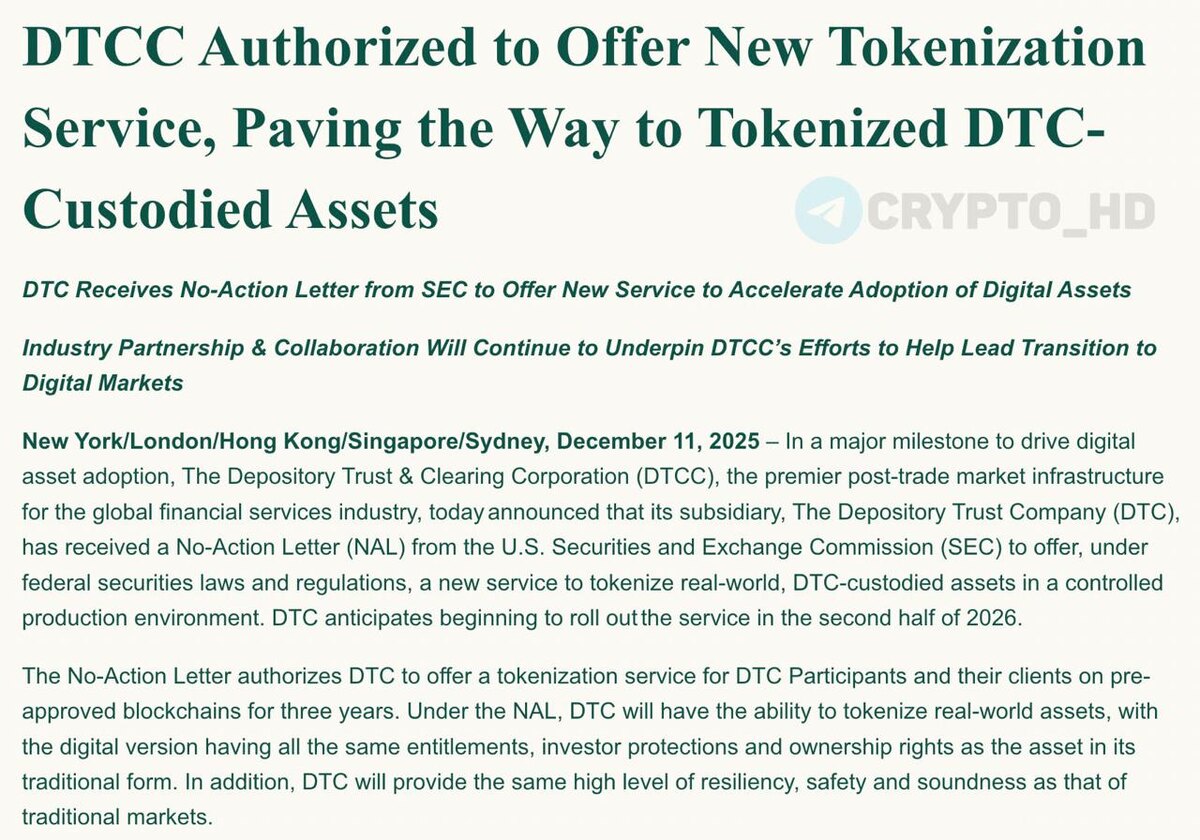 π₯πΊπΈ SEC ΡΠ°Π·ΡΠ΅ΡΠΈΠ»Π° DTCC ΠΏΡΠ΅Π΄Π»Π°Π³Π°ΡΡ ΡΡΠ»ΡΠ³ΠΈ ΠΏΠΎ ΡΠΎΠΊΠ΅Π½ΠΈΠ·Π°ΡΠΈΠΈ Π°ΠΊΡΠΈΠ²ΠΎΠ² β Π°Π½ΠΎΠ½Ρ
