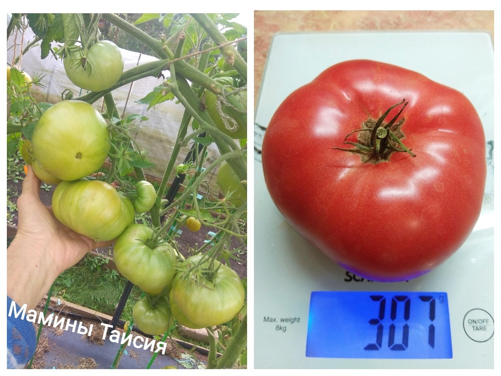 В этом сезоне он покорил меня во первых дико огромными плодами, а во вторых тем, что кисти с этими огромными плодами не приходилось подвязывать. У меня нижние плоды были совершенно гигантские, нижний весом 864 грамма.