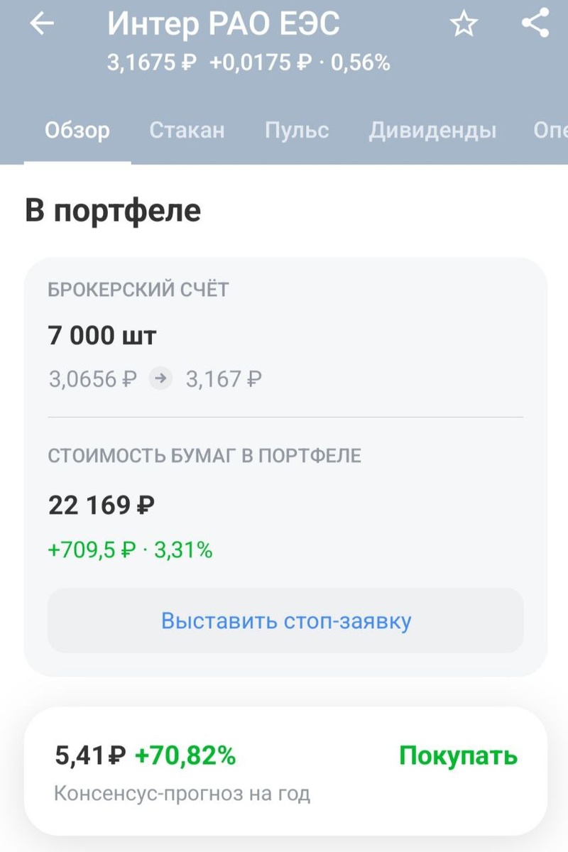 Новая компания в портфеле. Интер РАО. —————————————————— Добавляем энергетиков на брокерский счет, разбавляя переполненную долю нефтяного сектора. Фокус на масштабной инвестиционной программе (модернизация, новые станции), рост доли на розничном рынке до 20% к 2030 году, увеличение EBITDA до 320 млрд руб. и развитие энергомашиностроения - все то, что ждем от компании. Касаемо позиции в портфеле. Небольшая доля - всего 7000 шт. (около 20 тысяч рублей). Набирать хотел еще раньше, но ввиду задержки не успел поучаствовать в росте котировок и, соответственно, приобрел чуть дороже планированного. —————————————————— Акции все дороже, портфели растут и БКС почти вышел в плюс по открытым позициям. Тем не менее доля кеша еще довольно существенная.
