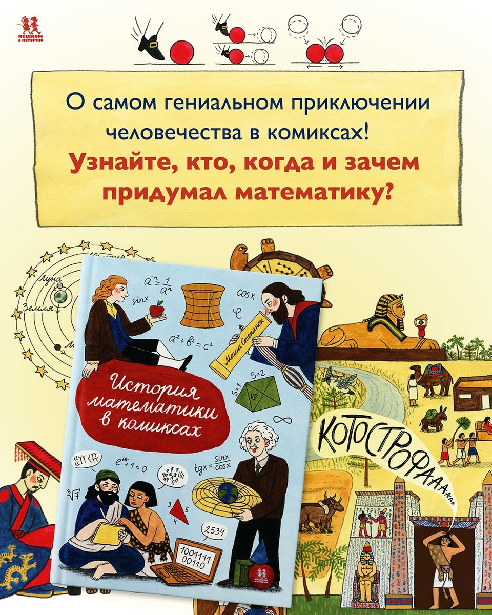 Докажем школьникам, что царица наук — это не скучно! С книгой «История математики в комиксах». Представляешь, математика — это вовсе не скучные учебники и сложные контрольные. Это настоящее приключение длиной в тысячи лет, полное гениальных догадок, курьёзных случайностей и открытий, которые изменили мир. И всё это теперь можно изучить в увлекательном формате — в книге «История математики в комиксах»! Эта книга, как машина времени, перенесёт тебя в Древний Египет, Грецию, на Восток и покажет, как росли и развивались числа и формулы. А чтобы ты сразу понял, насколько это круто, вот 5 невероятных фактов, о которых ты узнаешь из этой книги: 1. Полярная звезда — это не навсегда, это просто «должность»!