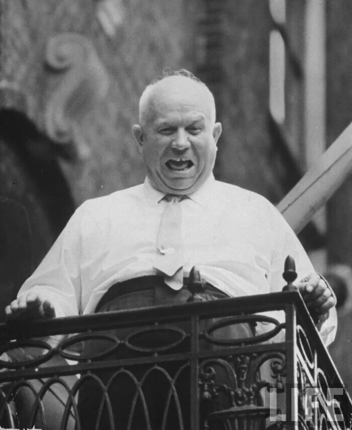 Никита Хрущев на балконе резиденции советской делегации.