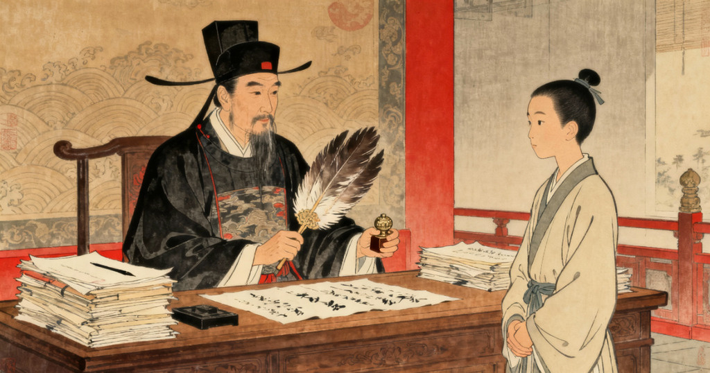 На следующий день Чжан и Ли подготовили заявление о своём участии в качестве свидетелей, и все стороны предстали перед судьёй. Судья У внимательно изучил документы. Увидев благородный и утончённый облик Хань Цзывэня, он вызвал учёного.