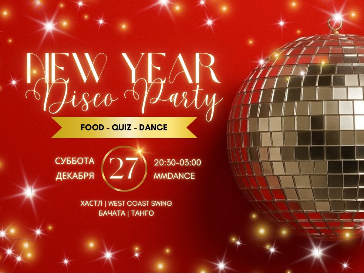 ✨НОВОГОДНЯЯ ВЕЧЕРИНКА MMDance - ночь, которая соберёт всех!✨ 📅 27 декабря ⏰ 20:30 - 03:00 📍 Студия MMDance, Газовая ул, 10Н Готовы закрыть год так, чтобы вспоминать его ещё долго? Мы готовим самую атмосферную, тёплую и танцевальную ночь декабря. Приходите сами и зовите друзей, даже если они никогда не танцевали - они влюбятся в атмосферу с первых минут. 🎄 ПРОГРАММА ВЕЧЕРА: 🌟 Квиз по новогодним фильмам - узнай, кто из компании остался«Один дома» 💃 4 танцпола: танго, бачата, хастл, WCS - выбирай настроение и ритм 📸 Стильная диско-фотозона - делай снимки, которые точно соберут лайки 📷 2 фотографа - ты точно попадёшь в кадр 🥂 Welcome-шампанское - за новый год и новые движения 🥗 Оливье + лёгкие закуски - чтобы танцевать до утра 🔥 Танго-мастер-класс - легко, красиво и доступно как опытным танцорам, так и новичкам. 🎉 Посвящение новичков - торжественный старт в танцевальном мире! ⭐ Dance-battle - вдохновляющее шоу от лучших 🎁 Новогодняя лотерея - розыгрыш подарков среди всех гост