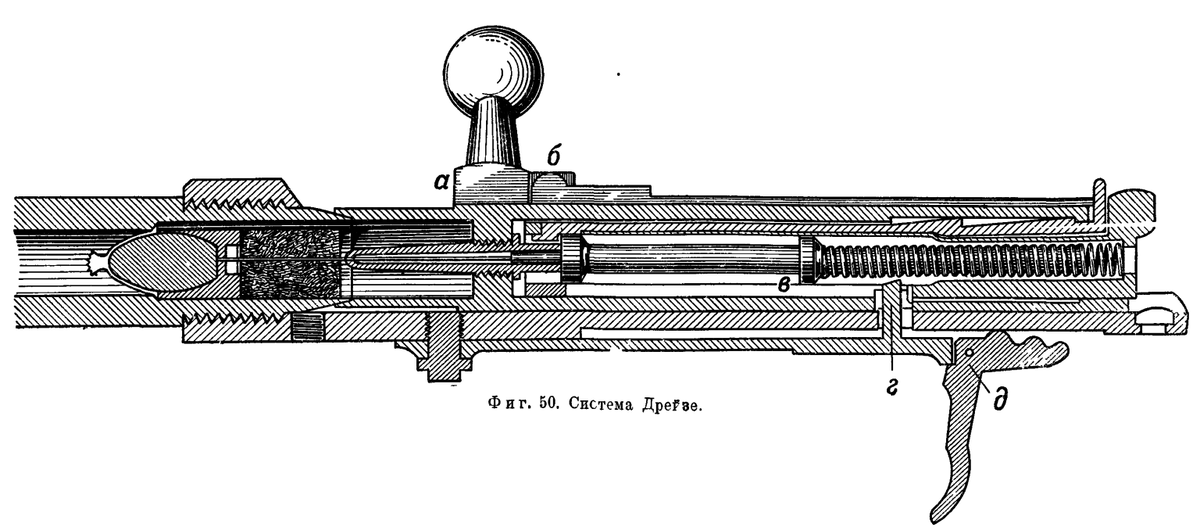 Как вы помните из статьи ПАТРОН ДРЕЙЗЕ, этот уникальный боеприпас содержал капсюль на в конце гильзы, а в самом её центре, и чтобы его наколоть, требовался длинный и острый, похожий на иглу, стержень-боёк. Оттого и оружие под такой патрон стали называть "игольчатым".