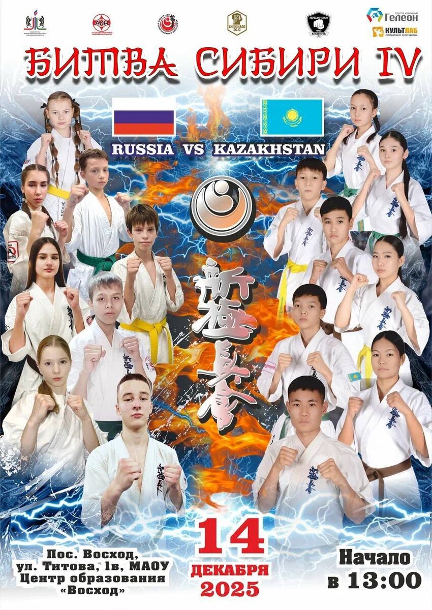 🔥Уже в это воскресенье — Турнир «Битва Сибири IV»🔥 В эти дни на татами выходят юные спортсмены из Республики Казахстан (г. Семей) и Российской Федерации (г. Новосибирск). В каждой возрастной категории от 10 до 17 лет ребята показывают свою силу, технику и боевой дух💪 🇰🇿👊Команда Казахстана: - 10-11 лет: Нуртазина Мадина и Калдыбек Арсен - 12-13 лет: Берикказынова Бану и Серикбосын Адил - 14-15 лет: Кусаин Толганай и Мазанбеков Айдос - 16-17 лет: Дауэтбекова Назым и Токтарбек Нурдос 🇷🇺👊Команда Новосибирска: - 10-11 лет: Лещенко Юлия и Камалетдинов Даниэль - 12-13 лет: Ерохина Элина и Алексеенко Добрыня - 14-15 лет: Пономарева Полина и Ермолович Богдан - 16-17 лет: Лушникова Татьяна и Пшеничников Дмитрий 🥋Каждый бой — это 3️⃣ раунда по 2️⃣ минуты с 4️⃣0️⃣ секундным перерывом. Интенсивное и честное соревнование для лучших каратистов региона! Следите за обновлениями и поддерживайте наших спортсменов в «Битве Сибири IV»💥💥💥