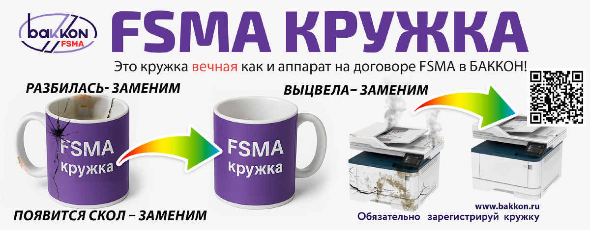 Когда вам предлагают «вечную кружку», первая реакция — недоверие. Как обычный фарфор или керамика могут служить вечно? Компания «Баккон» дала на этот вопрос неожиданный ответ. Мы создали FSMA-кружку — не просто посуду, а наглядный символ философии беззаботного и предсказуемого сервиса, который компания уже 30 лет предоставляет бизнесу на Дальнем Востоке. Эта кружка — осязаемое воплощение ключевого принципа работы компании: Full Service Maintenance Agreement (FSMA), что переводится как «Договор на полное сервисное обслуживание». Принцип прост: один раз заключаете соглашение и навсегда забываете о проблемах, поломках и непредвиденных расходах. Если ваша кружка разбивается, ее просто заменяют на новую. Бесплатно. Но зачем компании, которая занимается поставкой и обслуживанием офисной печатной техники, раздавать вечные кружки? Ответ кроется в желании продемонстрировать свой подход к клиентскому сервису на простом и понятном каждому примере. Пока вы пьёте кофе из «вечной» кружки, офисная т