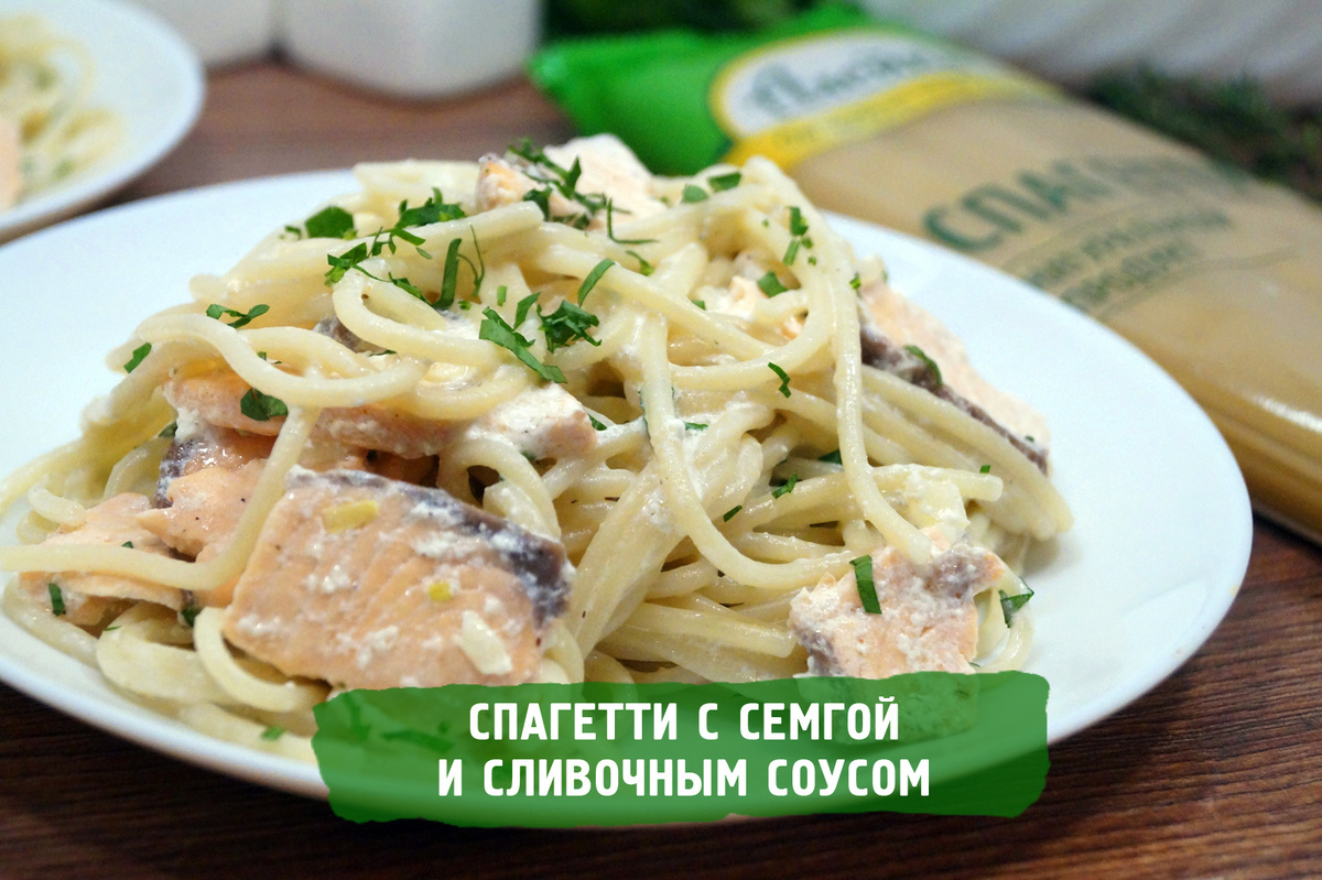 Всего 30 минут и вы получите ароматные спагетти с кусочками нежной семги в сливочно-чесночном соусе. Это блюдо идеально подходит для романтического ужина или праздничного меню. Его вкус впечатлит даже искушенных гурманов. Время приготовления: 30 минут. Ингредиенты: 1,5 литра воды, 200 г спагетти ТМ «Алейка», 200 г филе семги, 200 мл сливок 15% жирности, 3 ст. ложки натурального подсолнечного масла ТМ «Алейка», 2 зубчика чеснока, 1 луковица, 1 ч. ложка соли, 1 щепотка мускатного ореха, 2 веточки тимьяна, зелень петрушки по вкусу. Приготовление: Приятного аппетита!