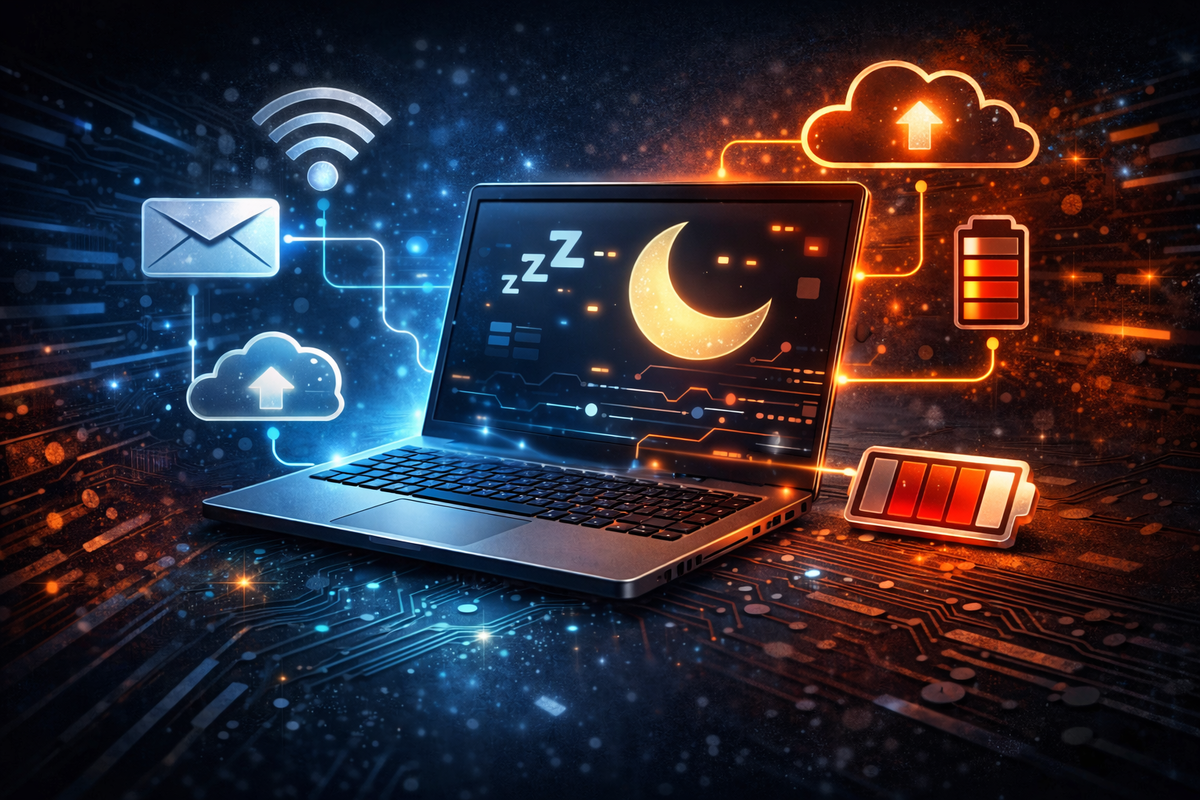 Чтобы крышку открыл — и сразу рабочий стол. Чтобы Wi‑Fi не отваливался, почта и мессенджеры догоняли сообщения, а Windows успевала поставить обновление без длинной перезагрузки утром. Удобно. Цена удобства — расход ночью. Если всё настроено хорошо, уходит 1–3% за 8 часов. Если нет — 10–30%. Больно.