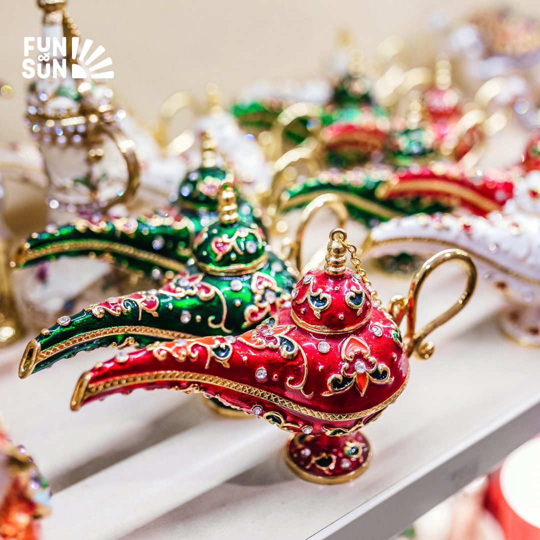 Какие сувениры из Бахрейна стоит привезти на память или в подарок близким: Жемчужные украшения — визитная карточка острова. Присмотритесь к изящным серьгам с розовым жемчугом или таинственному кулону с черным. Главное — покупать в проверенных лавках, чтобы получить натуральную красоту. Пальмовая вода — местный эксклюзив с целебными свойствами. Возьмите немного на пробу: ее уникальный вкус и польза для здоровья точно запомнятся. Восточные сладости порадуют гурманов. Кроме классической пахлавы, попробуйте воздушные пончики залабия или хрустящие пирожки самбуса. Предметы интерьера создадут атмосферу. Медный кофейник с узким носиком или ажурный светильник словно перенесут