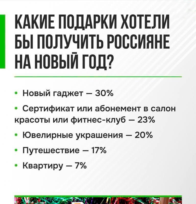 Большинство россиян (30%) хотели бы получить гаджет на Новый год. Пропаганда в России отвлекает людей от войны, о том, что на самом деле важно. Стоимость нового смартфона зачастую равняется стоимости дрона. Дрон приближает победу, а смартфон нет. Дрон может спасти жизнь, а смартфон нет. Друзья, помогайте фронту. Жизни русских героев в наших руках. Всё для фронта, всё для победы. Канал Волонтеров фронта Подпишись | ⚡️Голос за канал