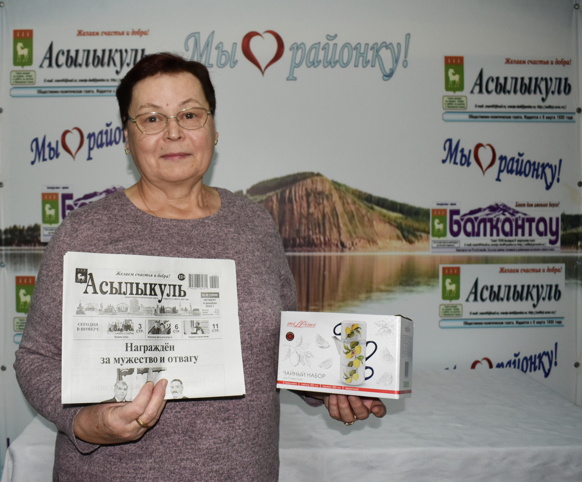 Районка даёт шанс выиграть прицеп дров Надежда Нургалеева родилась и выросла в Хайбуллинском районе Башкирии. Так сложилось, что в своё время одна республиканская строительная организация возводила там плотину и во время этих работ она познакомилась со своим будущим мужем Тимербулатом, уроженцем села Курятмасово . В 2000 году семья переехала в Давлеканово, где Надежда Николаевна трудилась в сфере торговли вплоть до выхода на заслуженный отдых. Они вырастили и воспитали двоих детей и уже стали дедушкой и бабушкой для пяти внуков. - Семья моих родителей раньше выписывала много корреспонденции. Журналы «Крестьянка», «Работница», для нас детей - журнал «Пионер» и газету «Пионерская правда», - вспоминает Надежда. - И, конечно же, газету Хайбуллинского района, кстати, раньше, она тоже называлась «Знамя». Поэтому мы привыкли жить с местным изданием, а переехав сюда, продолжили эту хорошую традицию и на протяжении 25 лет являемся подписчиками «Аслыкуля». Газету мы всегда ждём с нетерпением,