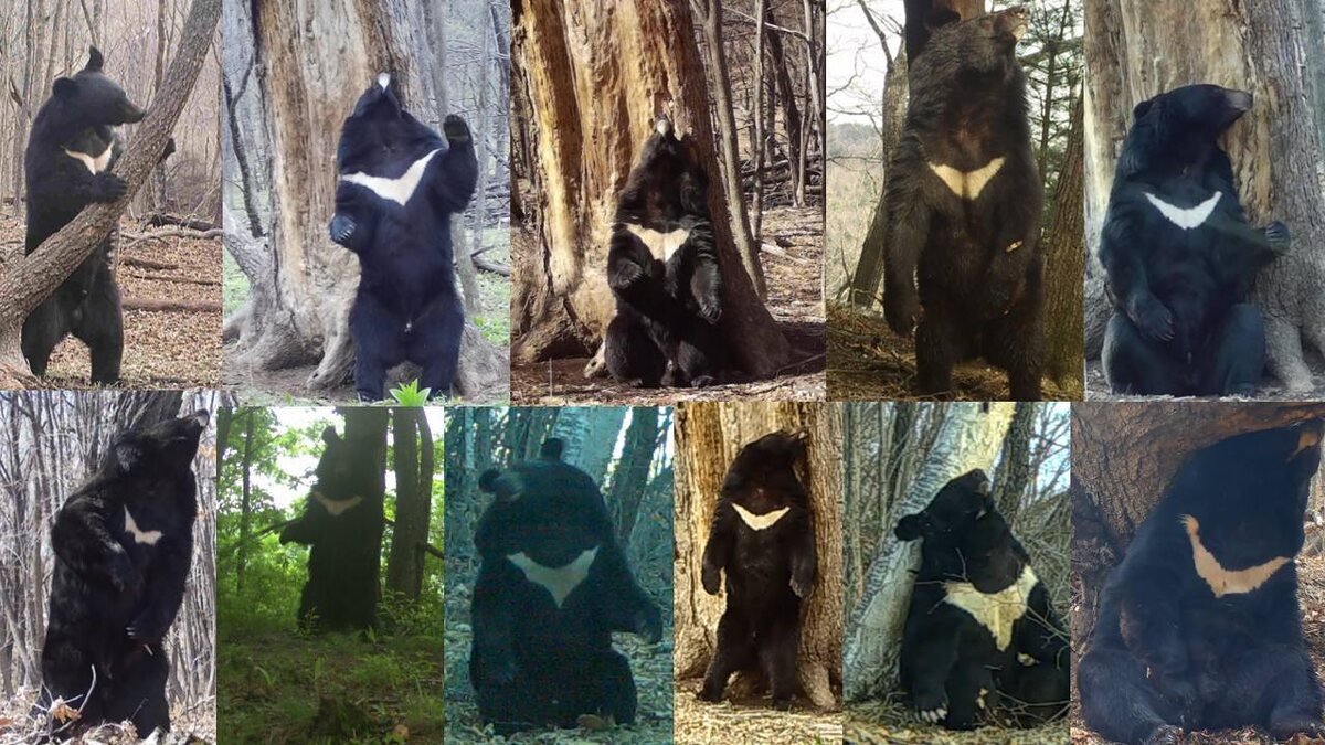 Каждый зверь уникален 🐻 Удобно наблюдать и изучать животных, когда индивидуальный рисунок окраса выражен, и его легко увидеть с помощью фотоловушек, например, как у леопарда и тигра. Гораздо труднее, когда основной окрас животного имеет однотонный цвет. Не смотря на то, что цвет шерсти гималайского медведя в основном чёрный, иногда с коричневым отливом на морде, форма белого «галстука» на груди у каждого медведя индивидуальна. По размеру и форме «галстука» можно распознать каждую особь. Удобнее всего, когда медведи поворачиваются грудью к фотоловушке. В такой позе сотрудники отдела науки «Земли леопарда» чаще всего застают медведей на маркировочных деревьях: косолапые трутся о ствол спиной, открывая обзор на свое белое пятно. Благодаря этим данным можно изучать внутривидовые взаимоотношения у гималайских медведей на маркировочных деревьях, а также проводить их учёт. Информация предоставлена сотрудником отдела науки «Земли леопарда» — Екатериной Блидченко. 🐆 Здесь «Земля леоп