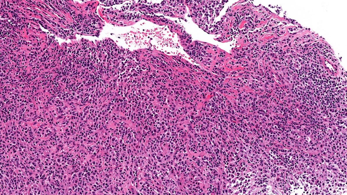 Случай метастатической меланомы в молочной железе 🔬 Метастатическая меланома в молочной железе — явление редкое, но вполне возможное. Как известно, меланома заслуженно носит репутацию «великого имитатора». В данном случае она может приобретать плазмоцитоидную морфологию (как показано на фото) и имитировать картину инвазивной дольковой карциномы. #молочнаяжелеза #гистология #меланома
