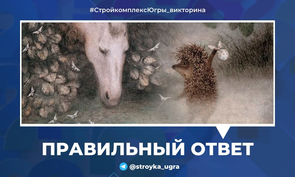 Друзья, спасибо всем, кто принял участие в #СтройкомплексЮгры_викторина! 👍 85% из вас выбрали правильный ответ: единственный мультфильм в предложенном перечне, герои которого ничего не строили, – «Ёжик в тумане». 🎉 В этом году знаменитому мультфильму, снятому Юрием Норштейном по одноименной сказке Сергея Козлова, исполнилось 50 лет. 🥇 25 мая 2003 года «Ежик в тумане» признали лучшим мультфильмом всех времен и народов на Международном анимационном фестивале «Лапута» в Японии. Всего мультфильм получил более 35 всесоюзных и международных наград. 💬 Вот и сегодня Ёжик сказал Медвежонку: - Как всё-таки хорошо, что мы друг у друга есть! Медвежонок кивнул. - Ты только представь себе: меня нет, ты сидишь один и поговорить не с кем. - А ты где? - А меня нет. - Так не бывает, - сказал Медвежонок. - Я тоже так думаю, - сказал Ёжик. - Но вдруг вот - меня совсем нет. Ты один. Ну что ты будешь делать?.. - Переверну все вверх дном, и ты отыщешься! - Нет меня, нигде нет!!! - Тогда, тогда… Тогд