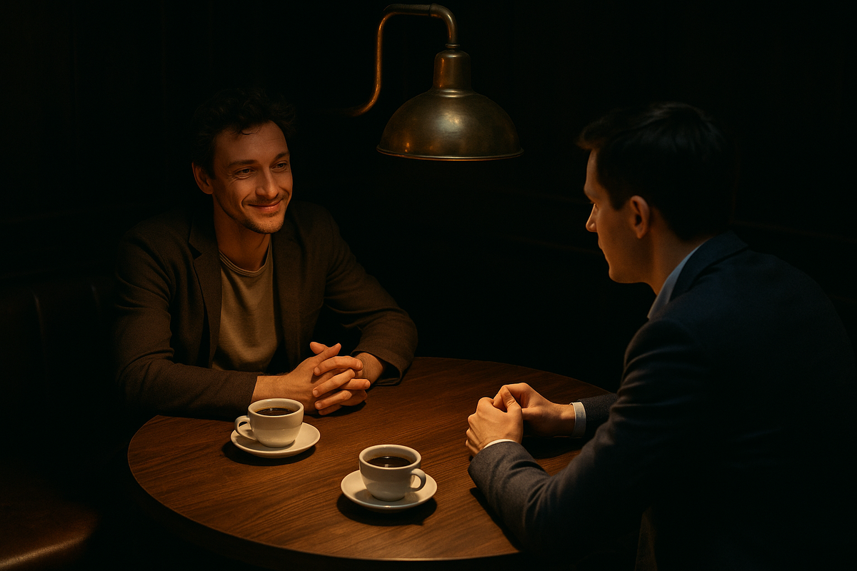 — Моё любимое кафе. Пошли, выпьем кофе — и я тебе кое-что расскажу.