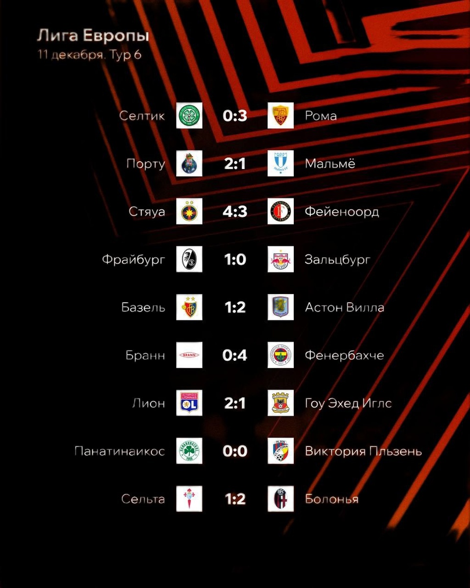 Результаты тура и турнирная таблица в Лиги Европы