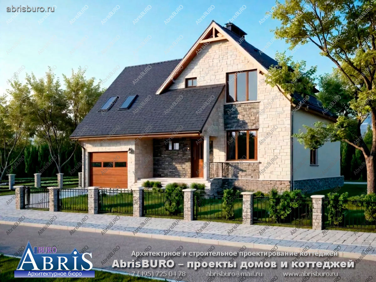 Проект коттеджа K1770-192 со вторым мансардным этажом, пристроенным гаражом, балконом, крыльцом, террасой, балконом
