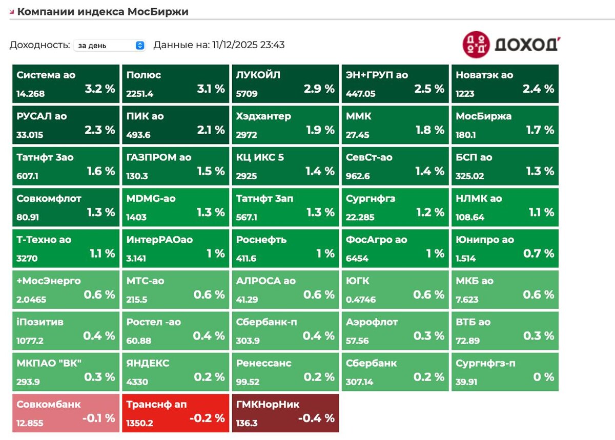 РФ рынок: в ожидании мироралли? В четверг индекс мосбиржи вырос на 1,3% до 2757 пунктов. Юань вырос на 0,45% до 11,22. Нефть упала на 1% до $61,5. Геополитика: финал близок? На выходных Американы могут направить своего представителя на переговоры с ЕС и Украиной, если сочтут что сделка по Украине возможна. Зеленский несколько смягчил позицию, но оставляет ее жесткой: 1)Готов провести выборы 2)Готов выйти из Донбасса, но для этого нужно провести референдум. Но конечно для всего этого нужно перемирие, до этого не готов обсуждать территориальные вопросы. Опять затягивает конфликт. Путин позвонил Мадуро, видимо, выступает посредником между США и Вэнесуэллой. Еще из Позитива Северск взяли меньше чем за неделю - до этого город и серебрянкое лесничество не могли взять 3 года. Украине аргументов это точно не добавляет. А это город в 12 тысяч довоенного населения, это немаленький город, теперь до ключевой цели потенциальной компании 2026 года - города Славянска остается меньше 25 км. Из