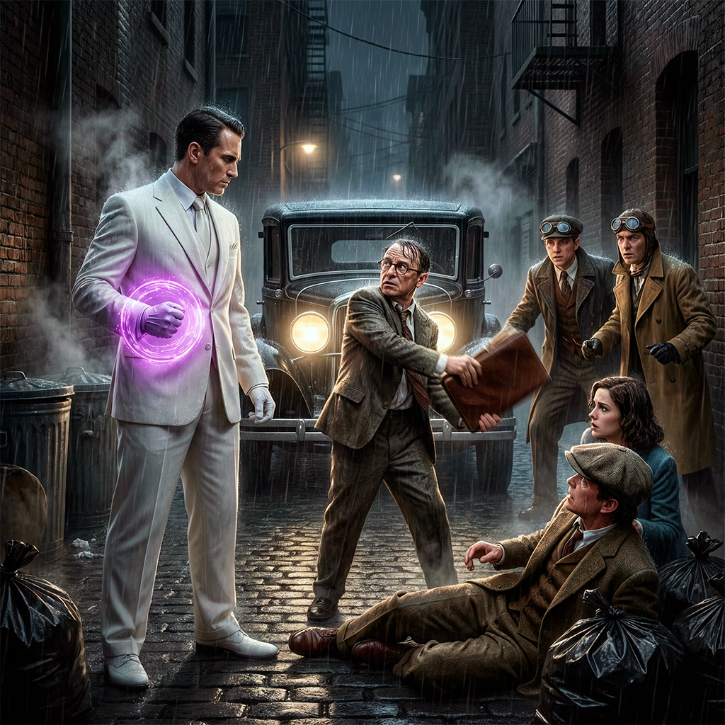 Он поднял руку в черной перчатке. На ладони загорелся диск, пульсирующий фиолетовым светом. — Этот патент, — он кивнул на папку, которую прижимал к груди трясущийся Эрхардт, — начало корпорации «Таннен Индастриз». Гидравлика, энергетика, а затем и хроно-технологии. Вы пытаетесь спасти «безумного ученого» Брауна, но вы уничтожаете мою империю. Я не могу этого допустить.
