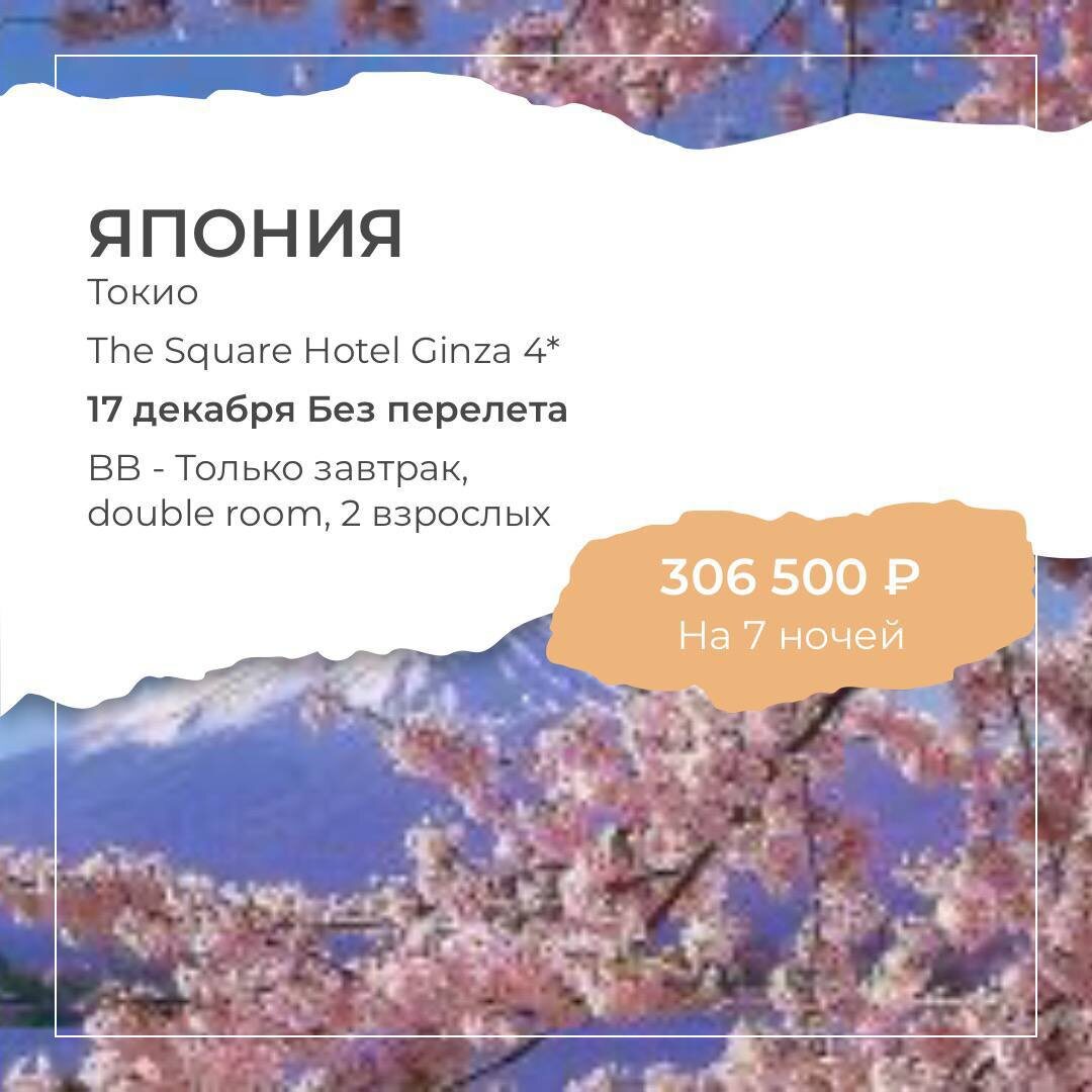 Токио в декабре и на новогодние праздники — идеальное время, чтобы почувствовать атмосферу мегаполиса, где традиции встречаются с будущим. Делимся двумя отелями, которые особенно понравились нашим туристам. 🔥Современный отель в сердце Токио Стильный, удобный, с продуманными мелочами — от спортзала и прачечной до автоматов с напитками и льдом. Рядом круглосуточные магазины и станции нескольких веток метро. Легко добраться до SkyTree и Диснейленда. Тихий, чистый, с уютным баром на первом этаже и внимательным персоналом. 🔥Отель с отличным расположением и красивыми видами Всего пару шагов до метро, вокруг множество кафе на любой вкус. Номера просторные, аккуратные, с прекрасными видами из окон. Гости особенно отмечают вкусные завтраки и комфорт. ✈️ Перелёт Москва–Токио–Москва: в декабре — от 105 112 руб. за двоих, в январе — от 267 736 руб. Отели в (https://planetaleta24.ru/tours#tvcartid=59381987)подборке (https://planetaleta24.ru/tours#tvcartid=59381987). (https://planetaleta24.ru/to