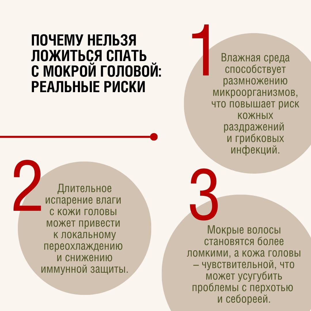 Привыкли ложиться спать с влажными волосами? Лень мыть голову утром? Но так ли это безопасно?