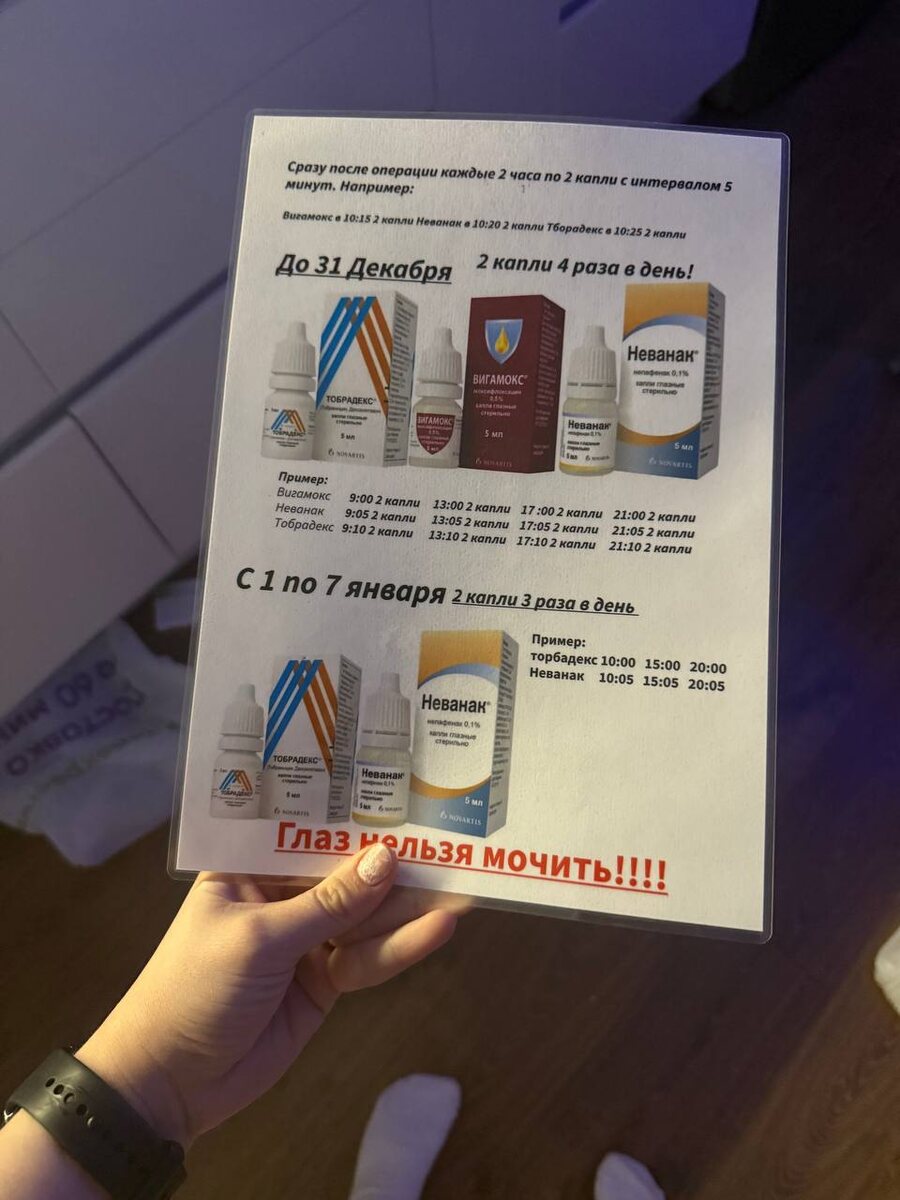 Во вторник я буду оперировать бабушку моей подруги, так она (подруга) из моей памятки сделала просто шедевр: Распечатала с картинками капли, расписала даты и время приема, заламинировала (!!!!) этот шедевр 😁 Ну я просто не знаю даже что сказать, такое у меня впервые и я в восхищении 👍🏻👍🏻👍🏻