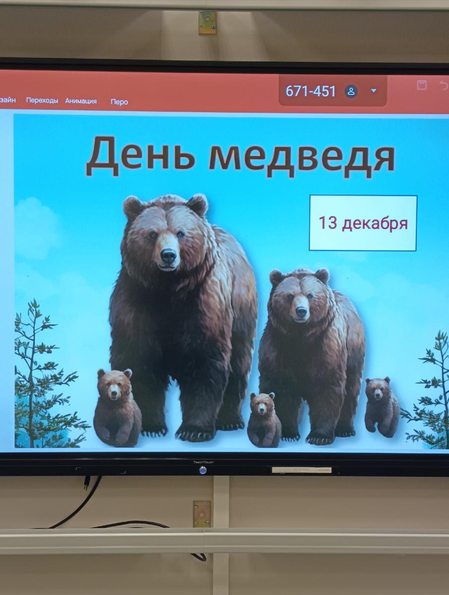 Большой, величественный и довольно опасный для человека зверь живёт на территории России и является царем наших холодных лесов. 13 декабря официально отмечается - День медведя в России! Накануне я провела для своих восьмиклассников мероприятие приуроченное к этой дате. 13 декабря - именно эта дата выбрана не случайно. Считается, что в этот день медведи окончательно впадают в зимнюю спячку. День медведя так же призван привлечь внимание к проблеме сокращения популяции этого вида из-за браконьерства и разрушения естественной среды обитания. В этот день принято вспоминать медведя, как героя сказок и былин, а так же проводить различные мероприятия направленные на просвящение о животном и его сохранении. Медведь известный сказочный персонаж. Тот самый косолапый и неуклюжий увалень любящий полакомиться малиной и мёдом. Видов медведей существует великое множество. Живут они в Европе, Америке, России и даже на Аляске. Медведи отличаются размерами и окрасом шкуры. Она может быть светло