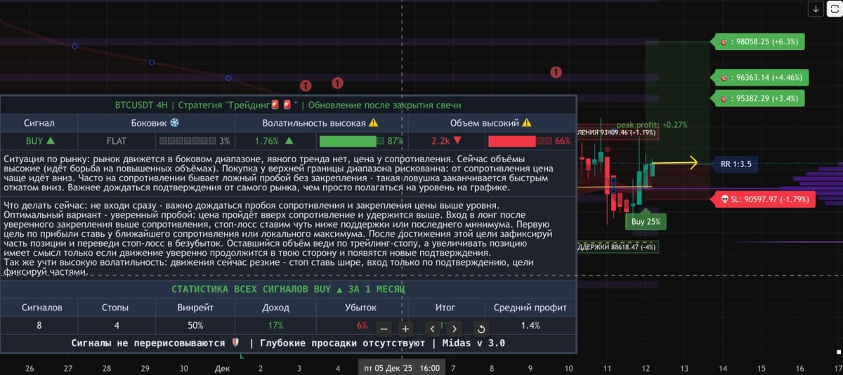 Утренний разбор BTC по Setup Master. Вчера BTC вновь отработал нижнюю часть диапазона и к ночи выкупился от зоны поддержки 88 618, вернувшись в середину боковика. Сейчас я вижу цену над зоной покупок Setup Master, движение идёт к локальному сопротивлению при высокой волатильности и повышенных объёмах. Ключевая опора на день для меня — поддержка 88 618, формальный риск-уровень по текущему сетапу расположен у 90 597: уход и закрепление ниже этого уровня будет означать отмену идеи. Пока держимся выше поддержки, сценарий на сегодня для меня такой: развитие движения к зоне сопротивления 93 409 и дальше к целям Setup Master 95 382 / 96 363 / 98 058. Бычий вариант — удержание над поддержкой и пробой 93 409 с отработкой целей. Медвежий — возврат под 90 597 и повторный тест нижнего края диапазона, где сетап теряет актуальность. 👑Подключить индикатор