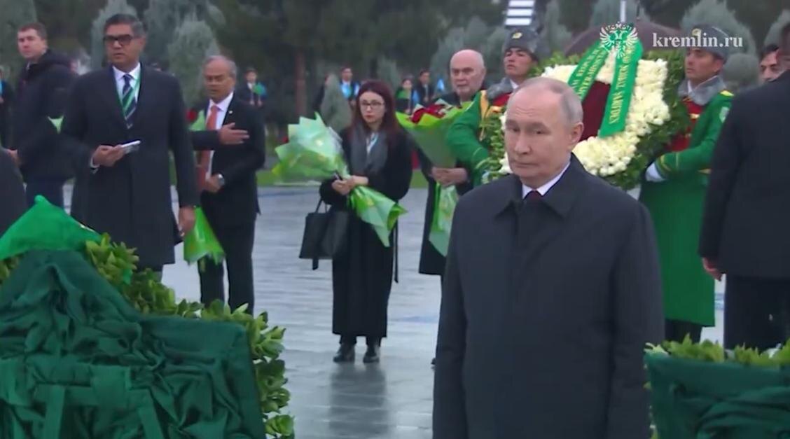 Президент Российской Федерации Владимир Путин принял участие в торжественной церемонии возложения венков к монументу Нейтралитета в столице Туркменистана. Мероприятие прошло в рамках визита российского лидера на международный форум. К монументу глава российского государства прибыл в сопровождении президента Турции Реджепа Тайипа Эрдогана, президента Туркменистана Сердара Бердымухамедова и других лидеров стран‑участниц форума. Венки, возложенные лидерами, выполнены в форме восьмиконечных звезд – одного из ключевых символов Туркменистана (такая же форма у государственного герба). Композиция каждого венка сочетает белые и красные цветы на зеленом фоне. Визит Владимира Путина в Ашхабад приурочен к Международному году мира и доверия, Международному дню нейтралитета и 30‑летию постоянного нейтралитета Туркменистана. В программе визита – участие в форуме и серия двусторонних встреч. Ранее сообщалось, что Владимир Путин прилетел в Ашхабад.