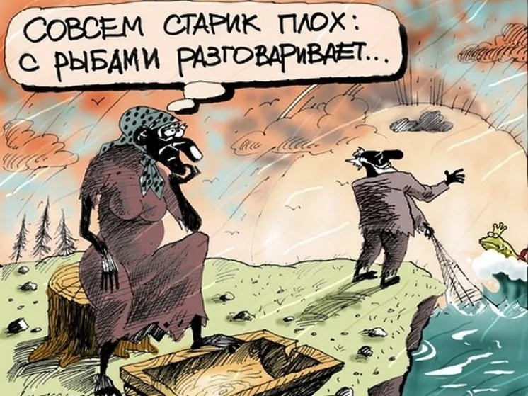 Сюжет «рыбак — рыбка — старуха» идеально ложится на язык сатиры: