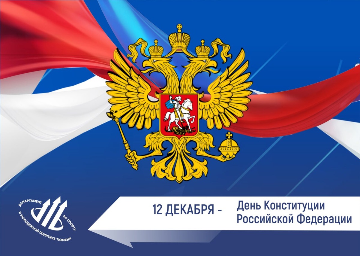 Дорогие друзья! Департамент по спорту и молодежной политике администрации города Тюмени поздравляет вас с одним из главных государственных праздников нашей страны - Днем Конституции Российской Федерации! Этот день символизирует нашу сильную и независимую страну. Конституция РФ - основной закон нашей страны, который определяет права и обязанности каждого человека, а также принципы управления и развития нашего общества. В этот день мы хотим выразить благодарность всем, кто трудится на благо нашей Родины. Ваш труд и усилия направлены на создание здорового и сильного общества. Пусть наша Конституция всегда остается надежным фундаментом для развития России, а ее принципы и ценности будут соблюдаться и передаваться от поколения к поколению. С праздником! Желаем вам крепкого здоровья, счастья и благополучия.