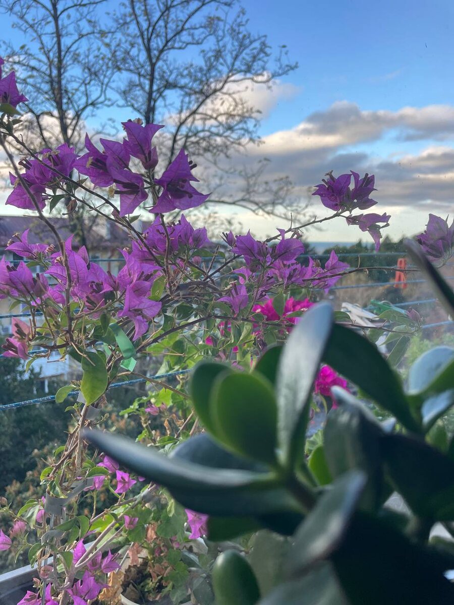 Дома хорошо. Бугенвилия радует ярким пятном за окном.