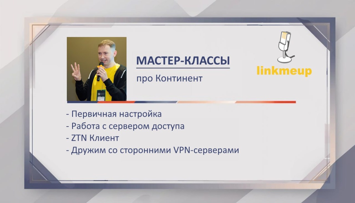 Так, вы вот просили больше интерактива и практики на линкмитапах? Вот и допросились, что мы решили попробовать. Поэтому в Новосибирске случится сразу несколько высокодуховных практик, но сегодня расскажем только лишь про часть из них. Итак, будто бы вам мало было всего происходящего, поэтому ловите сразу четыре мастер-класса, посвящённые работе с Континентом. 1. Первичная настройка и механизм идентификации пользователей 2. Настройка сервера доступа в NGFW Континент 4.2 и подключение удаленных пользователей 3. Разбор параметров настроек Континент ZTN Клиент 4. IPsecVPN в Континент 4.2: интеграция со сторонними VPN-серверами Расписание МК появится с релизом общего расписания. Никуда отдельно записываться не надо, просто приходите. Все доклады и мастер-классы собираем здесь: https://linkmeetup.ru/ovbdoklady За вход многого не просим, так что попасть на праздник жизни можно через эту кнопку: https://linkmeetup.ru/#tickets