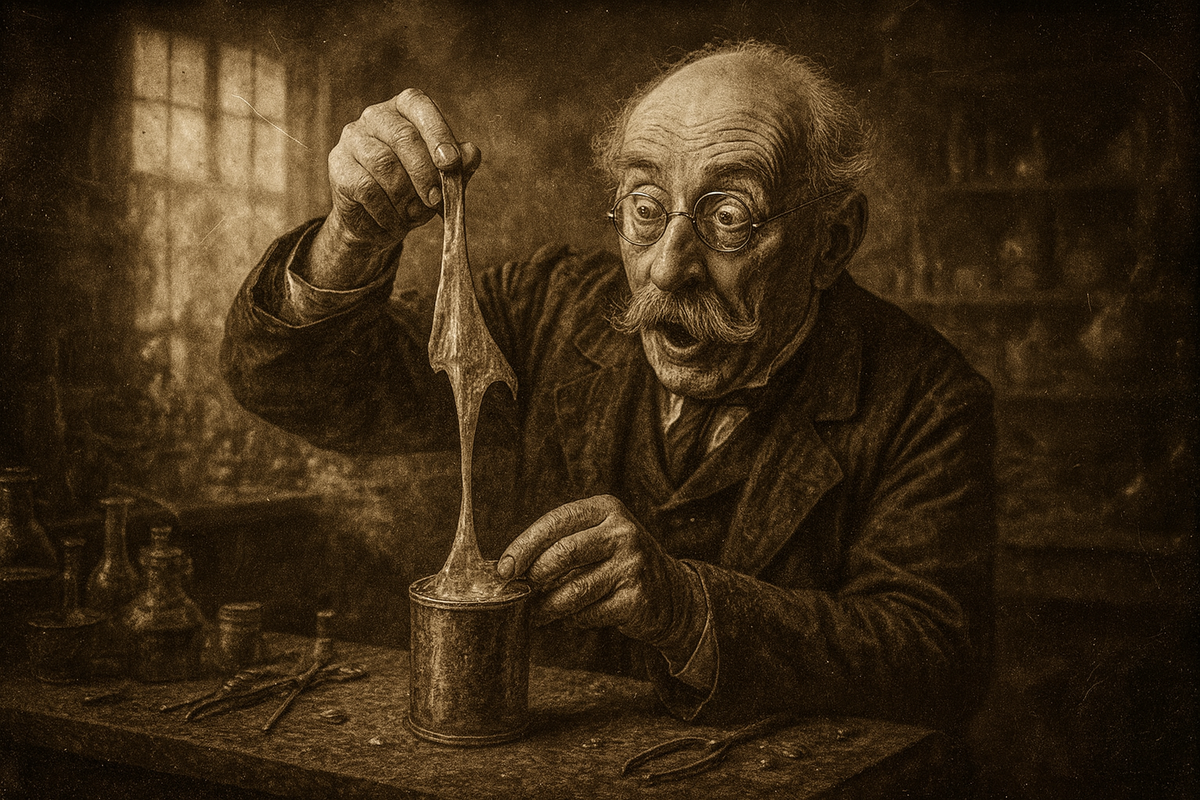 Представьте себе: середина XIX века, английский изобретатель случайно забывает закрыть банку с льняным маслом. Спустя время он замечает, что на поверхности масла образовалась гибкая резиновая пленка.