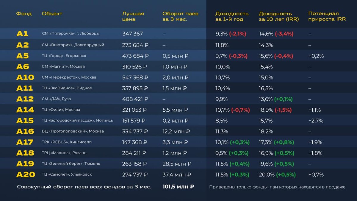 Вторичный оборот паев фондов на 12.12.2025 г. ➡️ Актуальные цены вы найдете в личном кабинете, раздел «В продаже». 🔸 Доходность зависит от цены пая конкретного предложения 🔸 Количество доступных паев ограничено Как происходит расчет показателей, объяснили здесь. — * Настоящее предложение не является публичной офертой #best