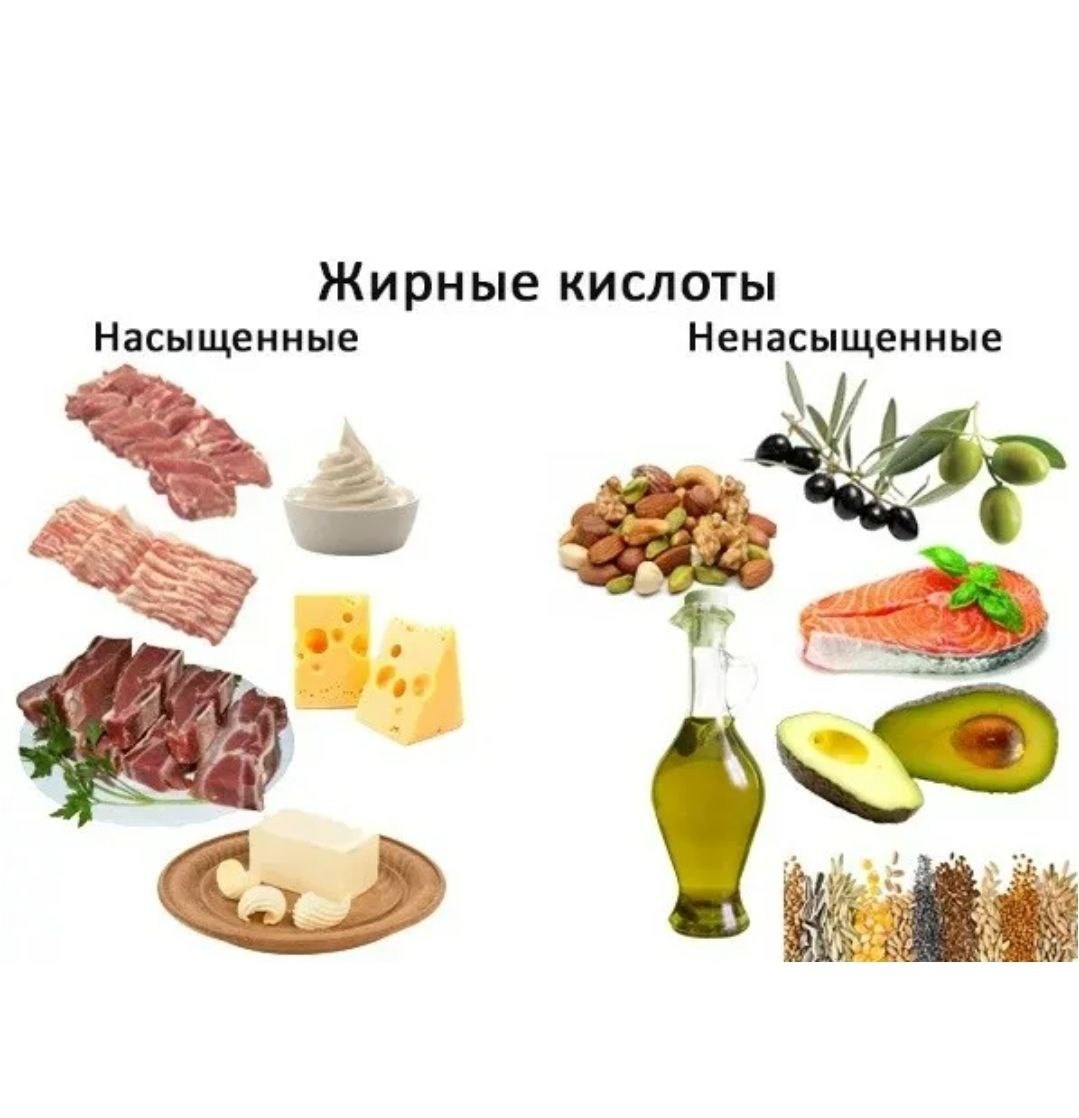 Насыщенные жиры: что это, где скрываются и почему с ними нужно быть осторожнее💯 Что такое насыщенные жиры? Это тип жиров, в молекулах которых все связи углерода «насыщены» атомами водорода. Из-за такой структуры они обычно твердые при комнатной температуре (кроме некоторых тропических масел). Основные источники: · 🥩 Животные продукты: жирное мясо (свинина, говядина), сало, сливочное масло, сыр, сливки, молочные продукты высокой жирности · 🥥 Некоторые растительные масла: пальмовое масло, кокосовое масло · 🍟 Фастфуд и переработанные продукты: колбасы, сосиски, выпечка, кондитерские изделия, картофель фри (часто готовятся на пальмовом или гидрогенизированных жирах) Почему они считаются вредными? 1. Влияние на холестерин и сердце Это наиболее доказанный вред. Насыщенные жиры: · Повышают уровень «плохого» ЛПНП-холестерина в крови · Способствуют образованию атеросклеротических бляшек в сосудах · Увеличивают риск сердечно-сосудистых заболеваний, инфарктов и инсультов Важный нюанс